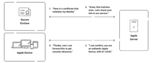 With Apple devices, the process includes a real-time verification step with Apple’s attestation servers. Here’s what happens: the device generates a cryptographic assertion using a key stored in the Secure Enclave. That assertion is sent to Apple, which confirms the device’s hardware integrity.SecureW2 receives this verdict, can validate that information with the device’s MDM,and use it to decide whether to issue a certificate, and if so, what kind.
