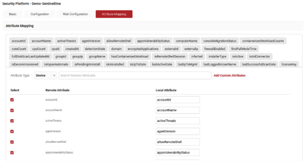 - The platform supports up to 76 attributes, with 10 used by default to calculate a device’s risk score.