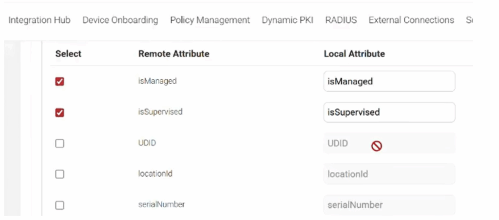 - Real-time lookups validate device posture using attributes like isManaged and isSupervised.