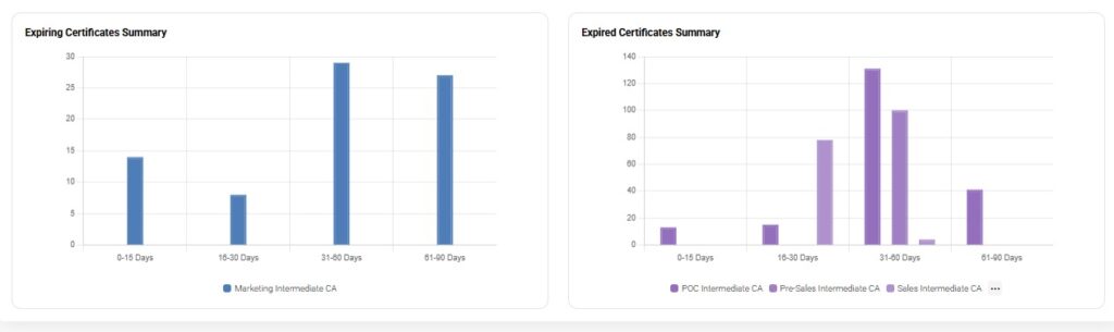 - The new dashboard has a count of the certificates at the Intermediate CA level.
