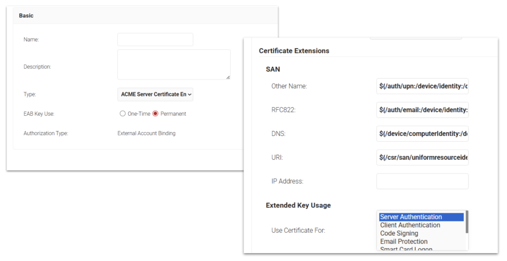 - ACME for server certificate enrollment is now supported.