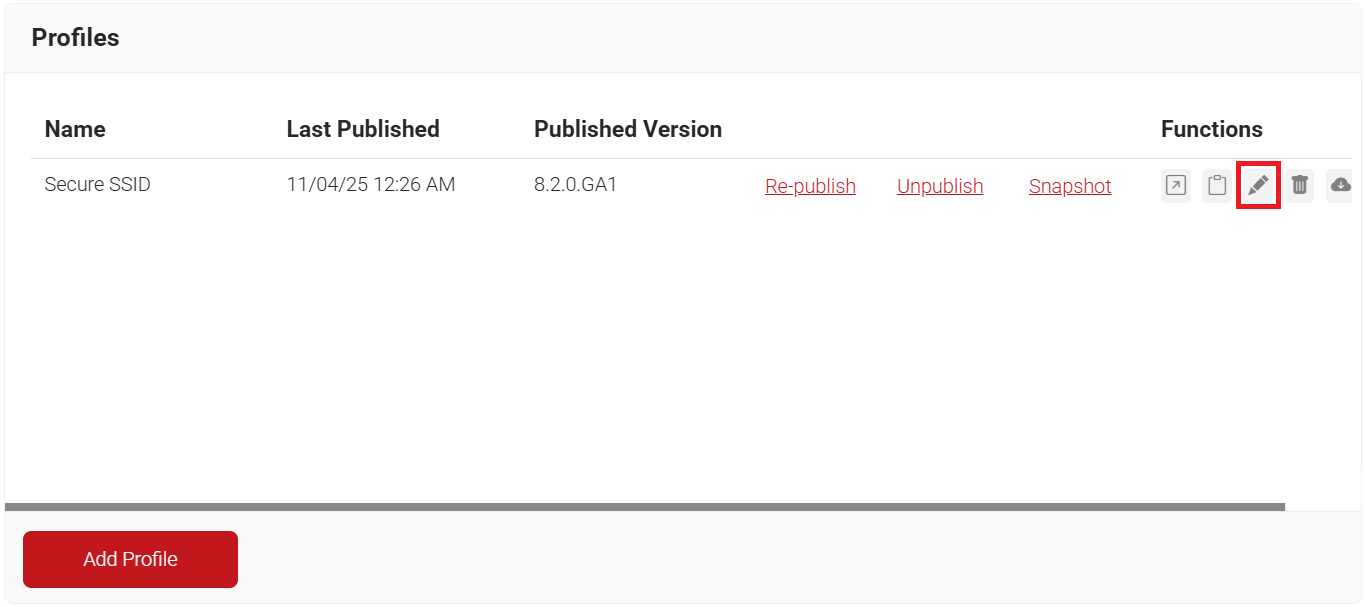 - Click Edit that applies to the network profile you created for this WPA2-Enterprise Authentication, and copy the name of the network.