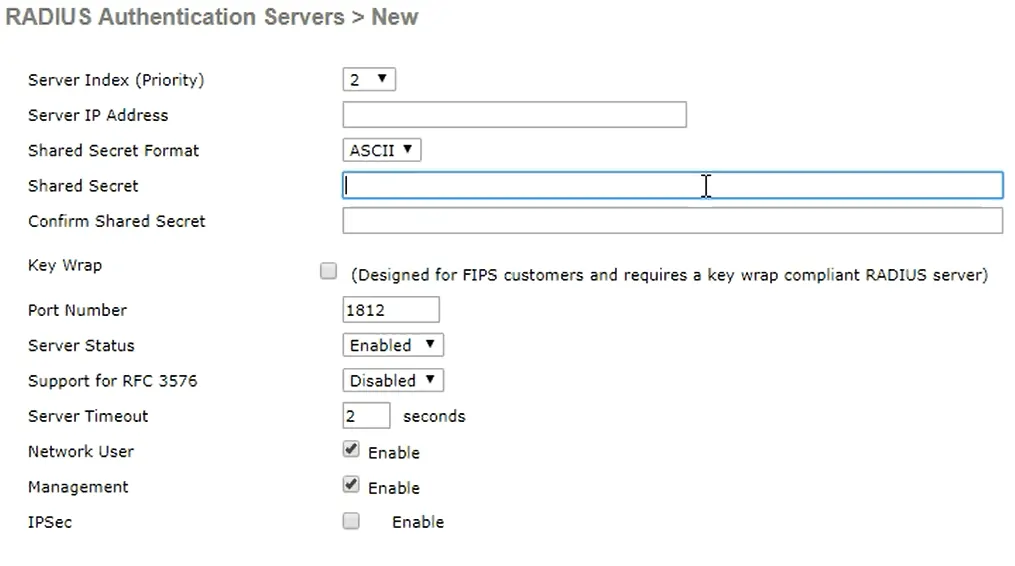 - Click Authentication beneath the heading RADIUS, and click New.