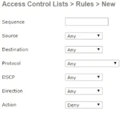 - In the new rules list for the ACL, type 1 in the Sequence textbox.