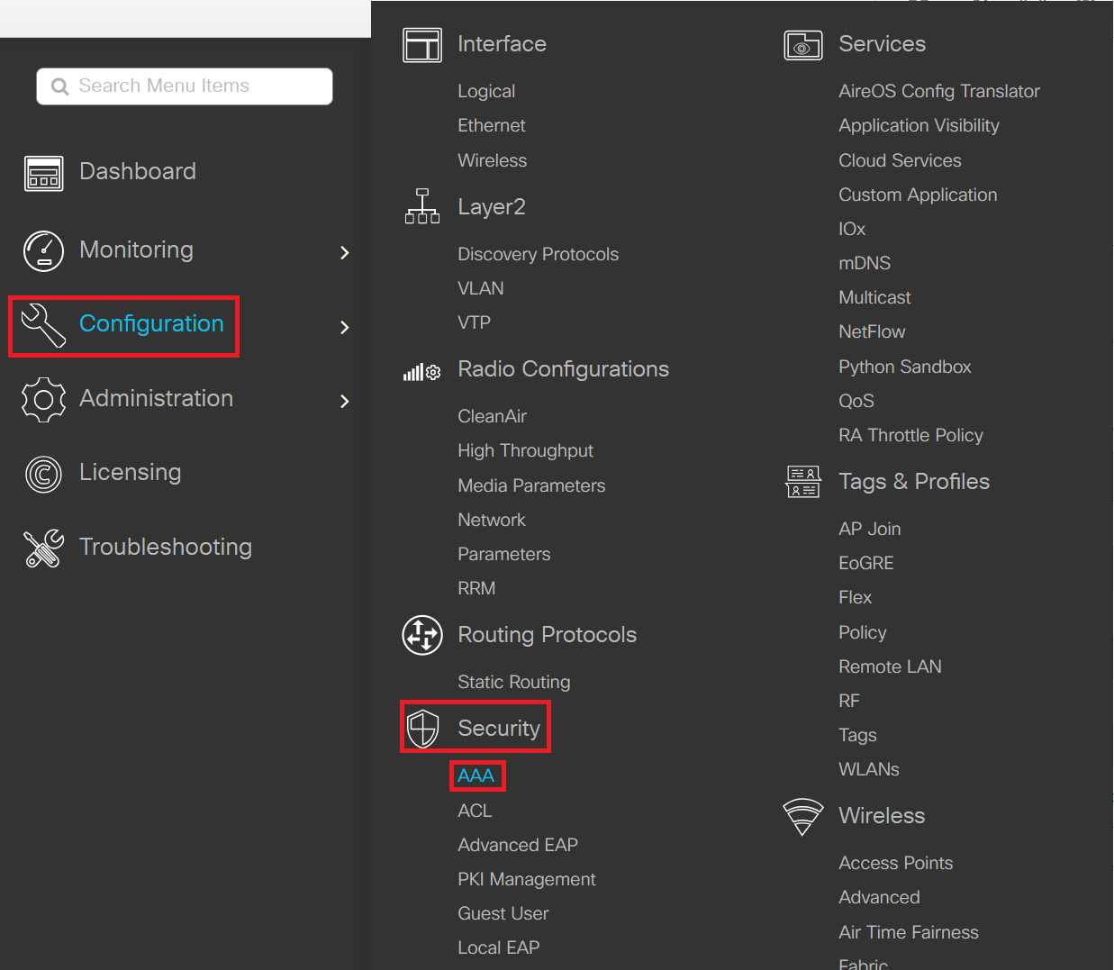 - Navigate to Configuration > Security > AAA.