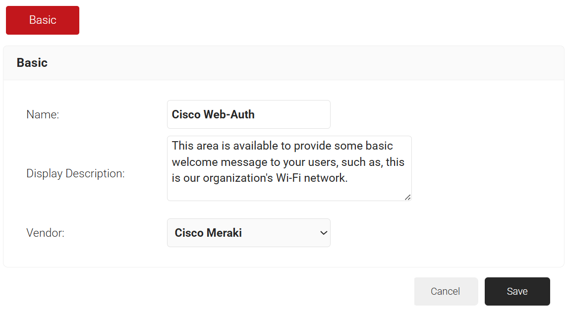 - From the Vendor drop-down list, select Cisco Meraki.