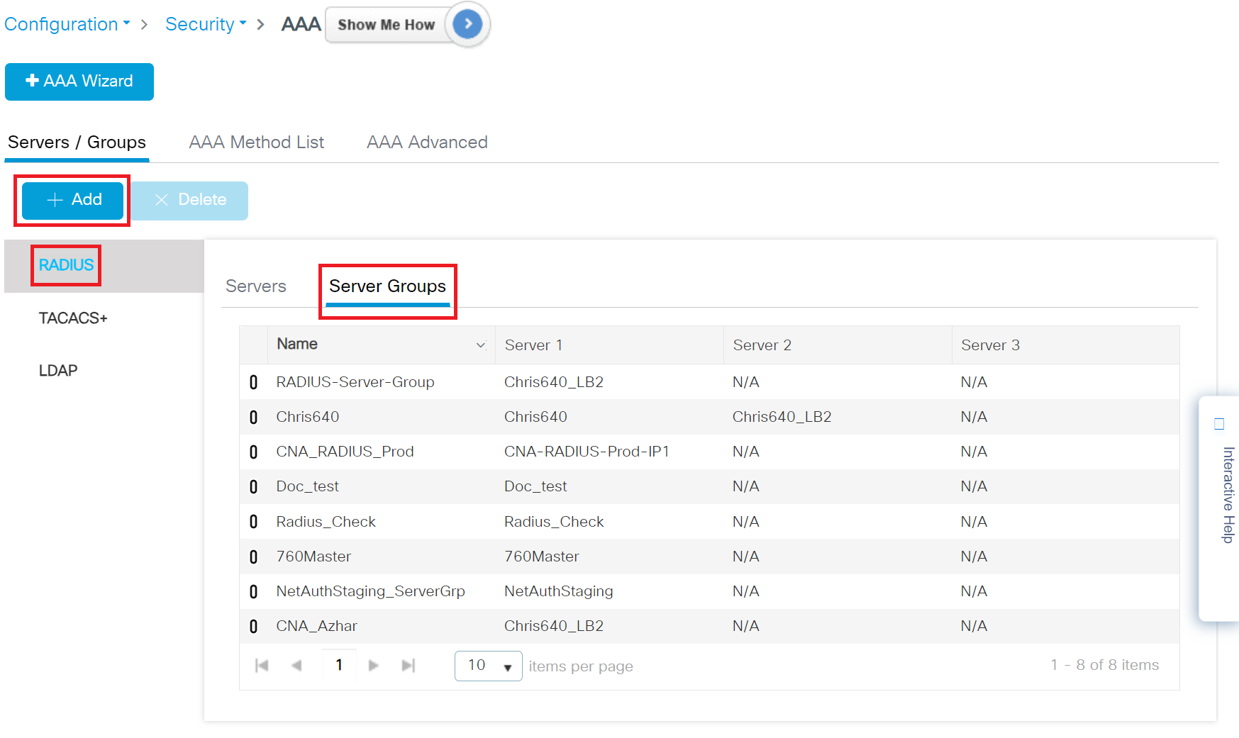 - Under Servers/Groups, click RADIUS in the Server Groups tab and then click the +Add button to create a new server group.