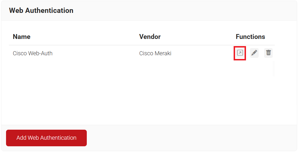 - On the Web Authentication page, click the Open landing page icon and copy the landing page URL.
