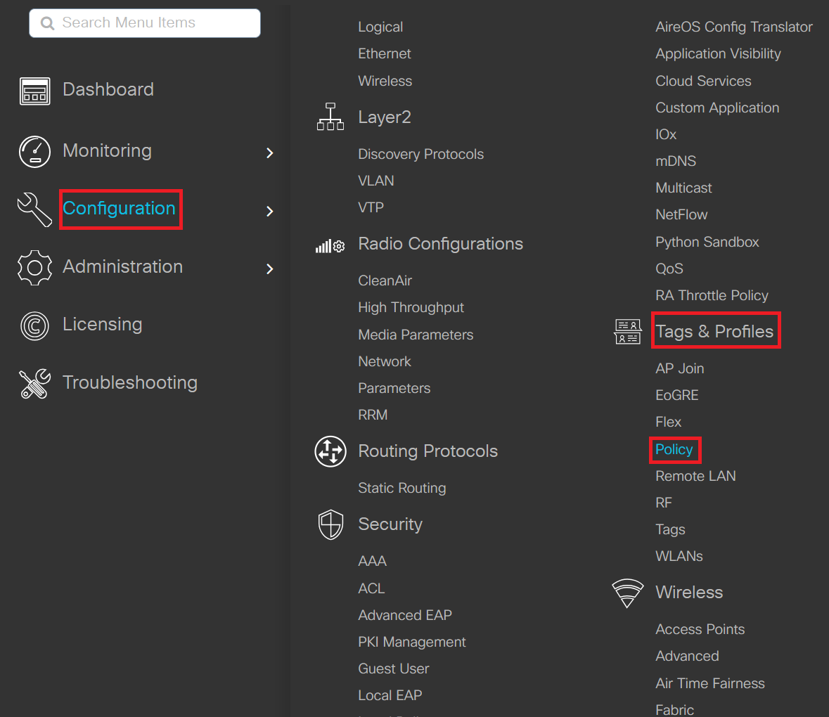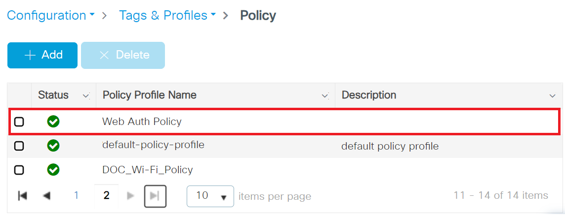 - Navigate to Configuration > Tags & Profiles > Policy.