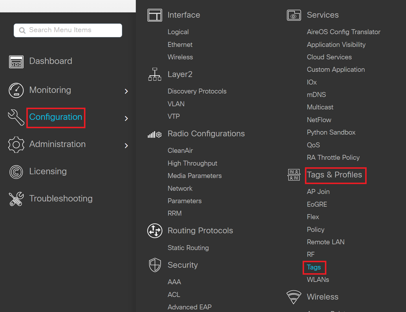 - Navigate to Configuration > Tags & Profiles > Tags.