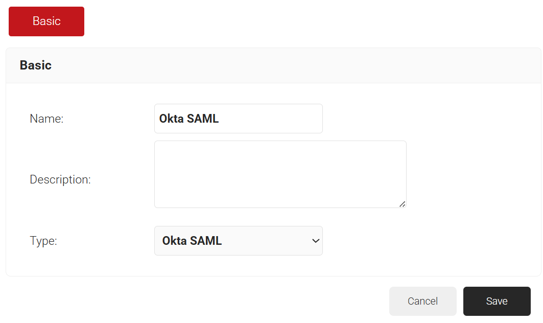 - From the Type drop-down list, select Okta SAML.
