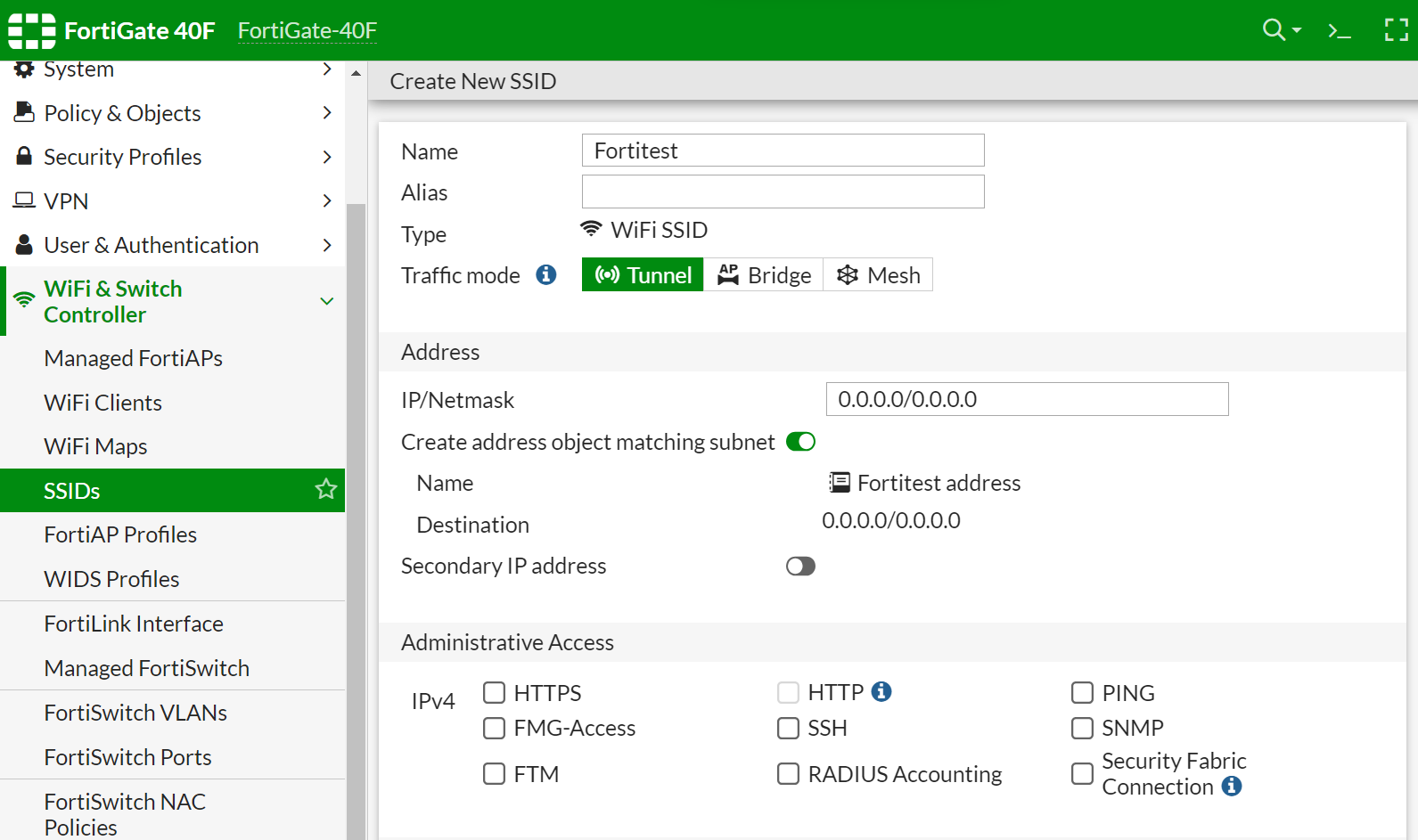 - Navigate to WiFi & Switch Controller > SSIDs.