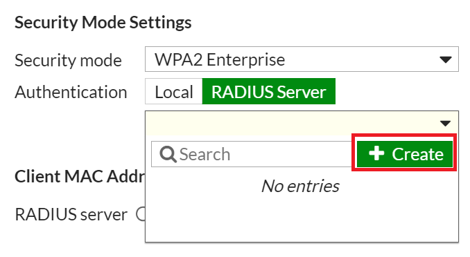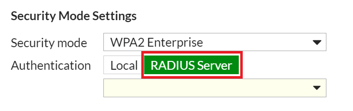 - In the Authentication field, enable the RADIUS Server option.