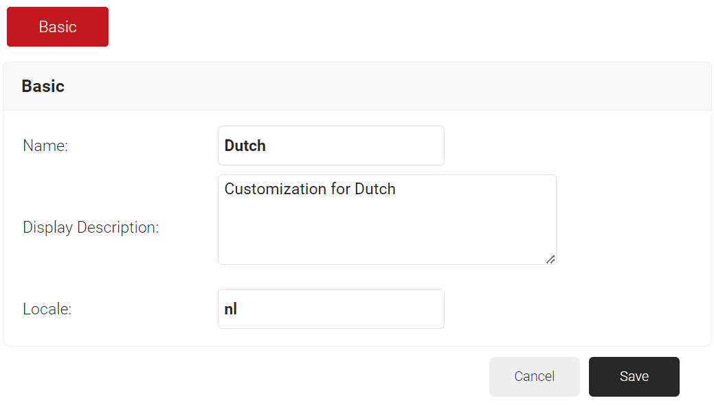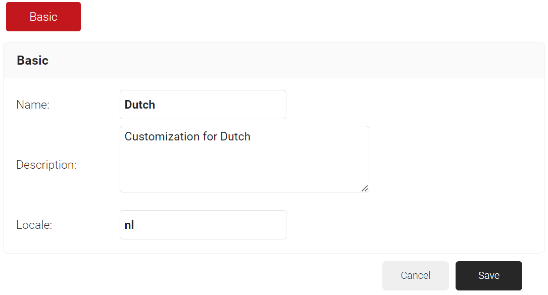 - In the Locale field, enter a language code. e.g., nl for Dutch.