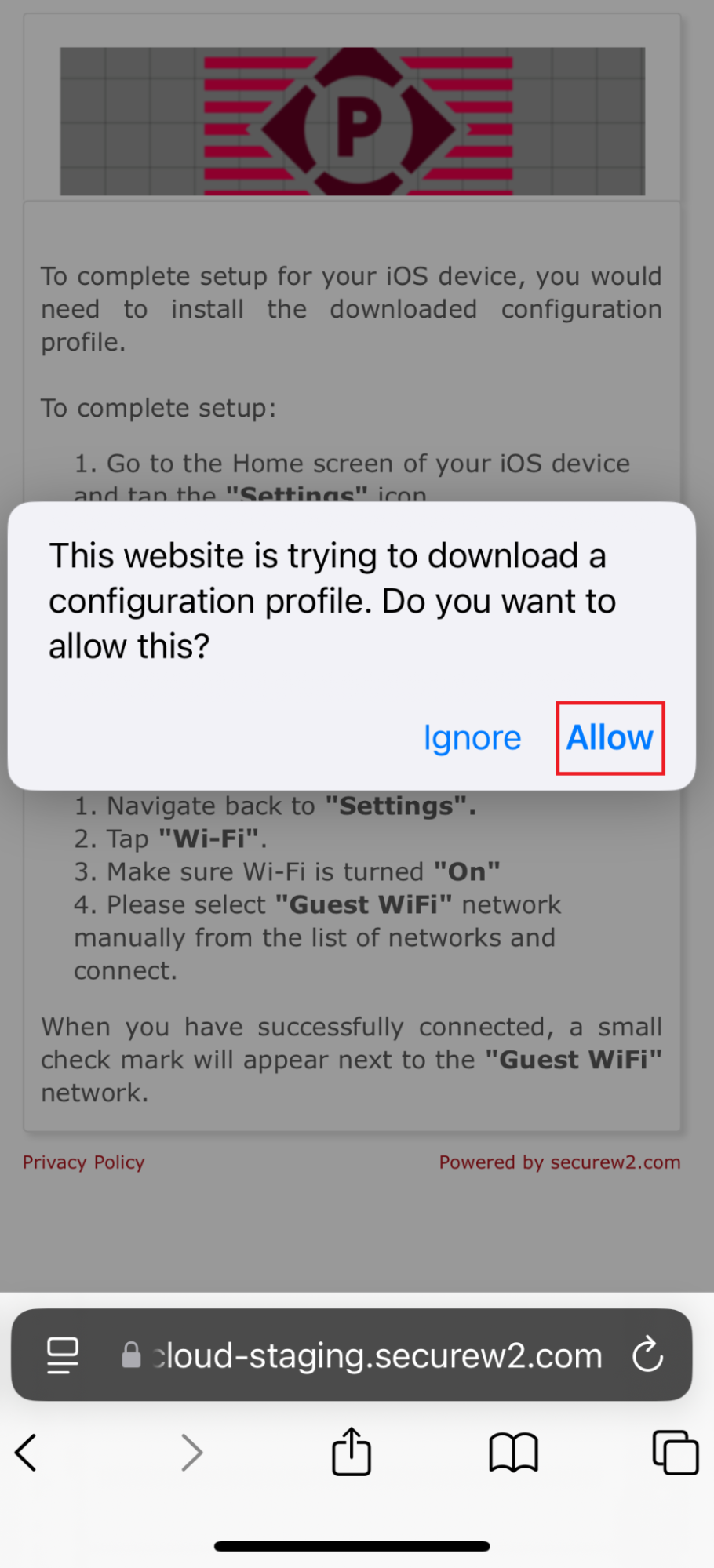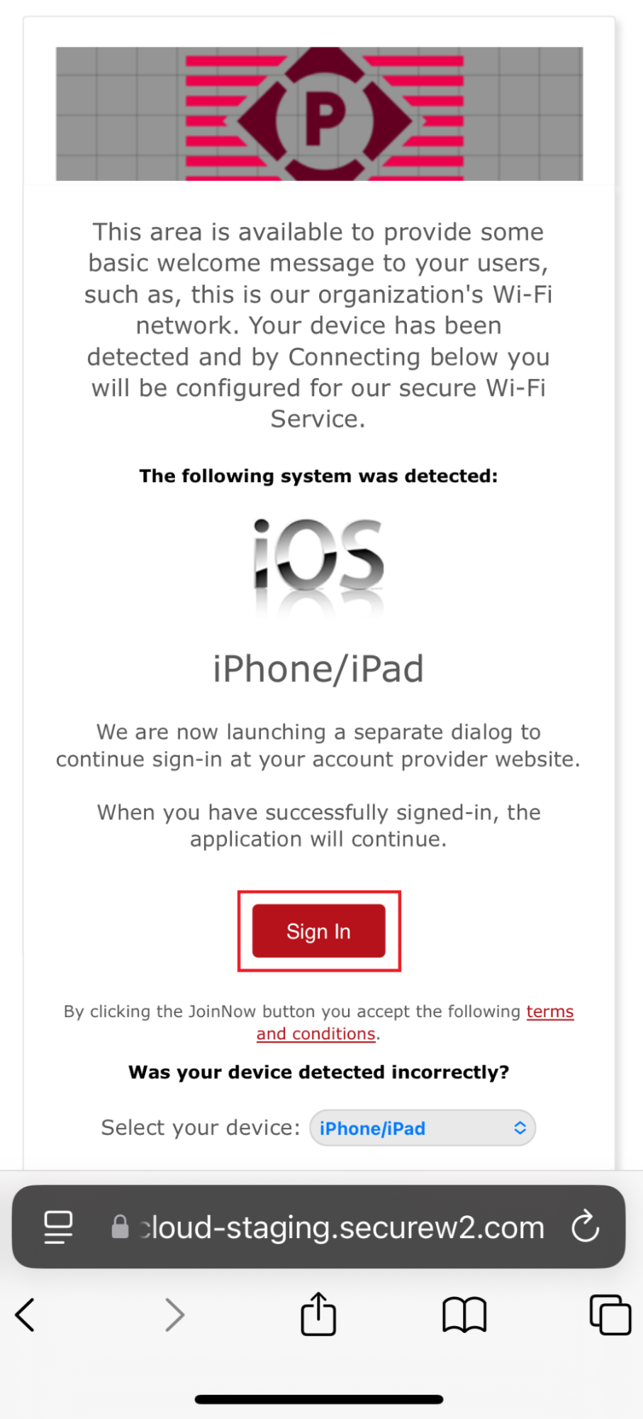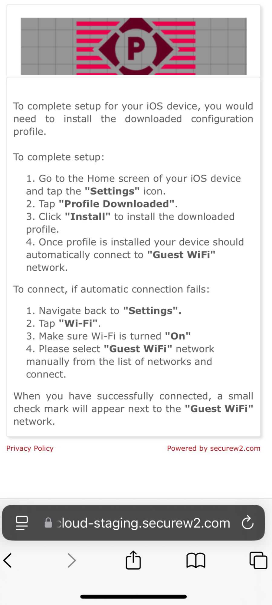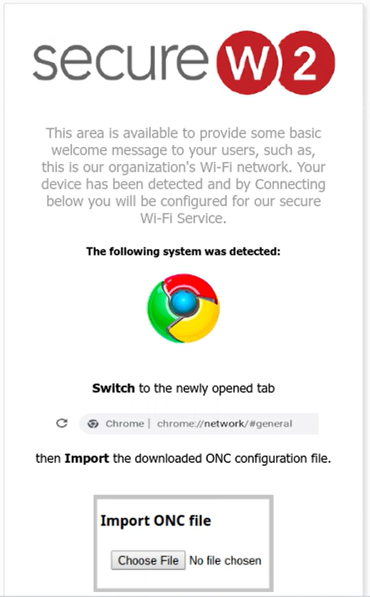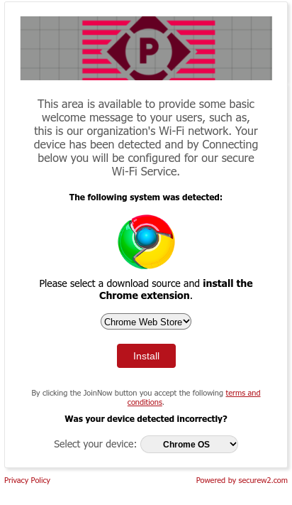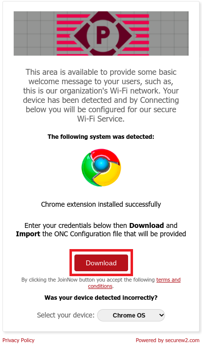 - To customize the Guest Landing page design, download the .css file from https://cloud.securew2.com/public/<Organization Code>/guest/css/main.css, edit the file, and then upload it by clicking the Choose file button. The maximum size for a .css file that can be uploaded in the stylesheet section is 100 KB. This URL is also available on the Landing Page.