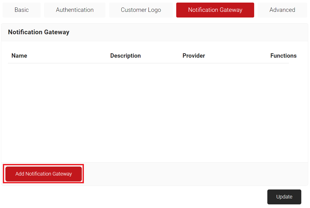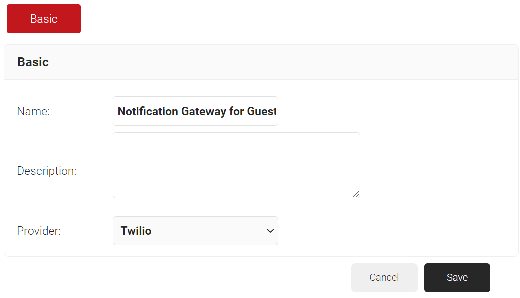 - In the Basic section, enter the name of the notification gateway in the Name field.