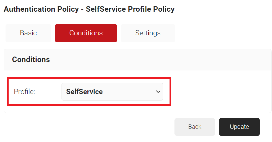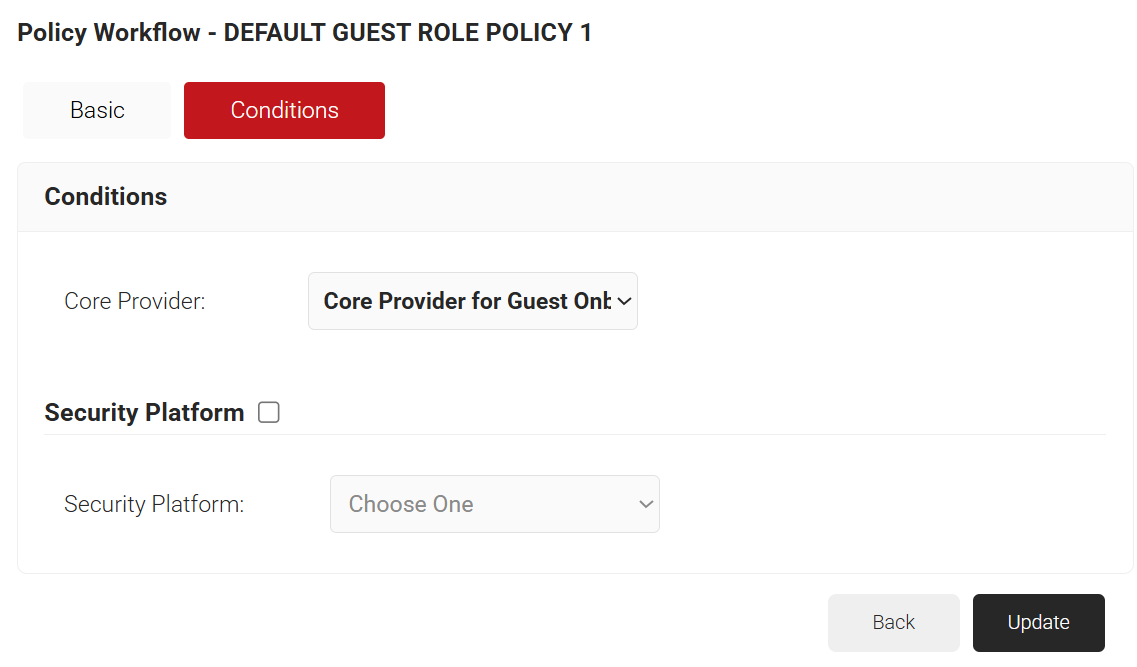 - In the Conditions section, from the Policy Workflow list, ensure that the policy workflow you created in the Policy Workflow section is selected.