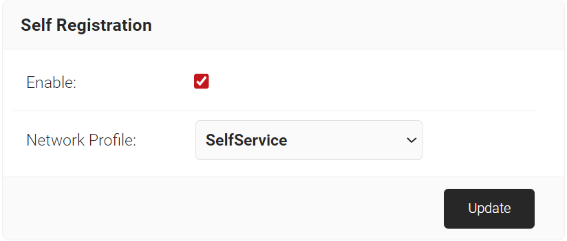 - In the Self Registration Login Button field, enter the name to display on the button on the Guest Landing page.