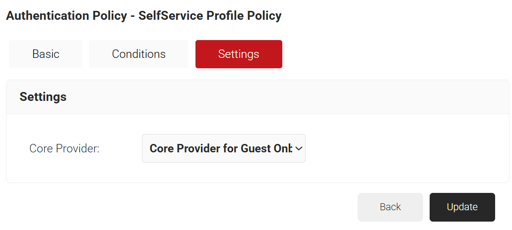 NOTE: Once the Network profile is mapped on the Guest Registration page, you cannot modify the Identity Provider and Network Profile on the Authentication Policies page, nor can you delete the Authentication policy.