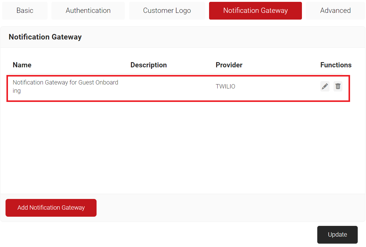 The Notification Gateway enables the network admin to send OTP notifications to guest users after authentication. Currently, we use the SMS service from Twilio to send OTPs.