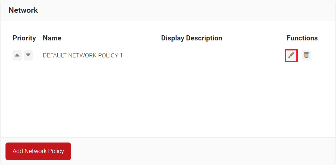 - Click Edit on the DEFAULT NETWORK POLICY 1.