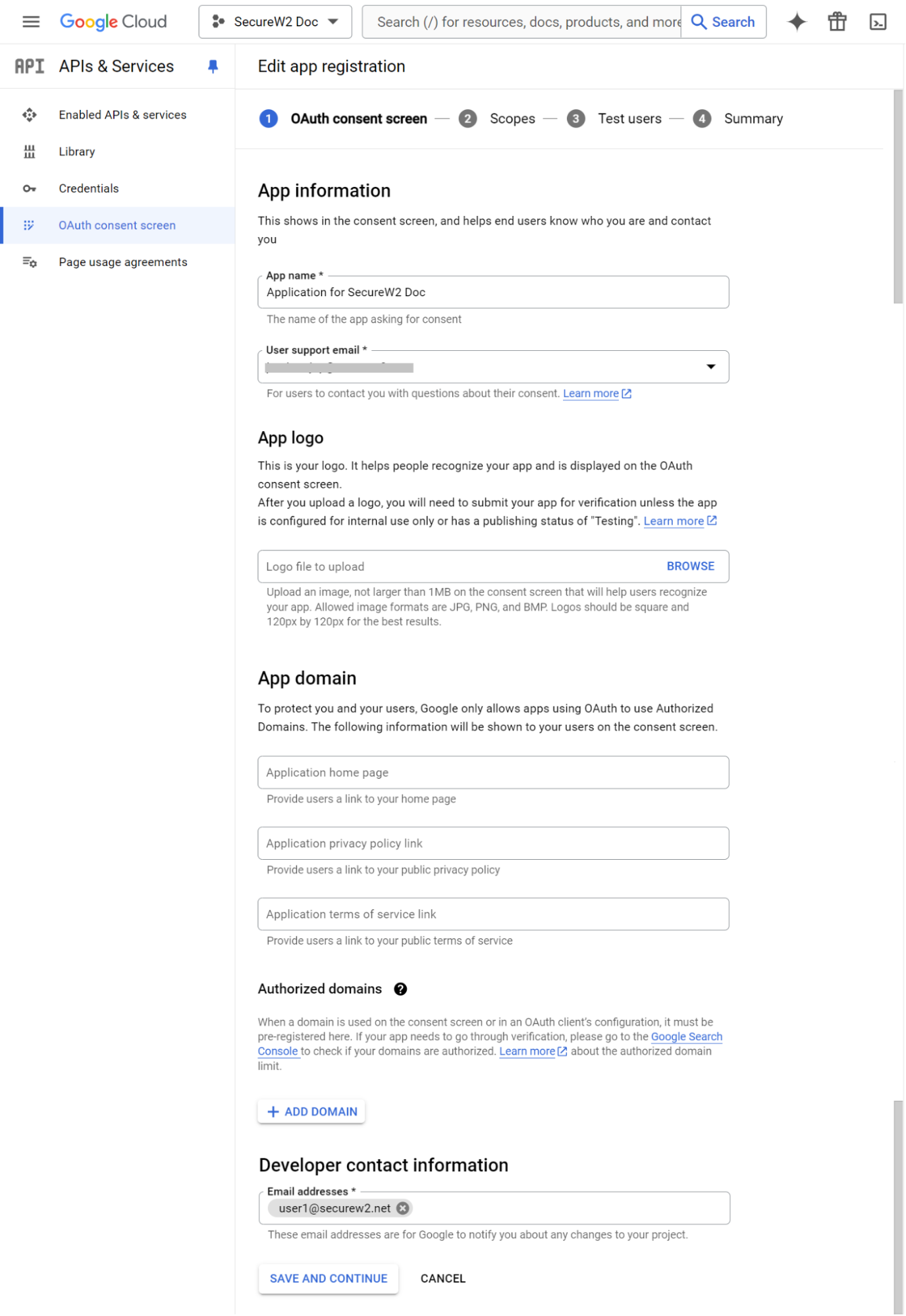 - From the User support email drop-down list, select the email address where users can contact you with questions about their consent. The App information is displayed on the consent screen to help end users identify and contact you.