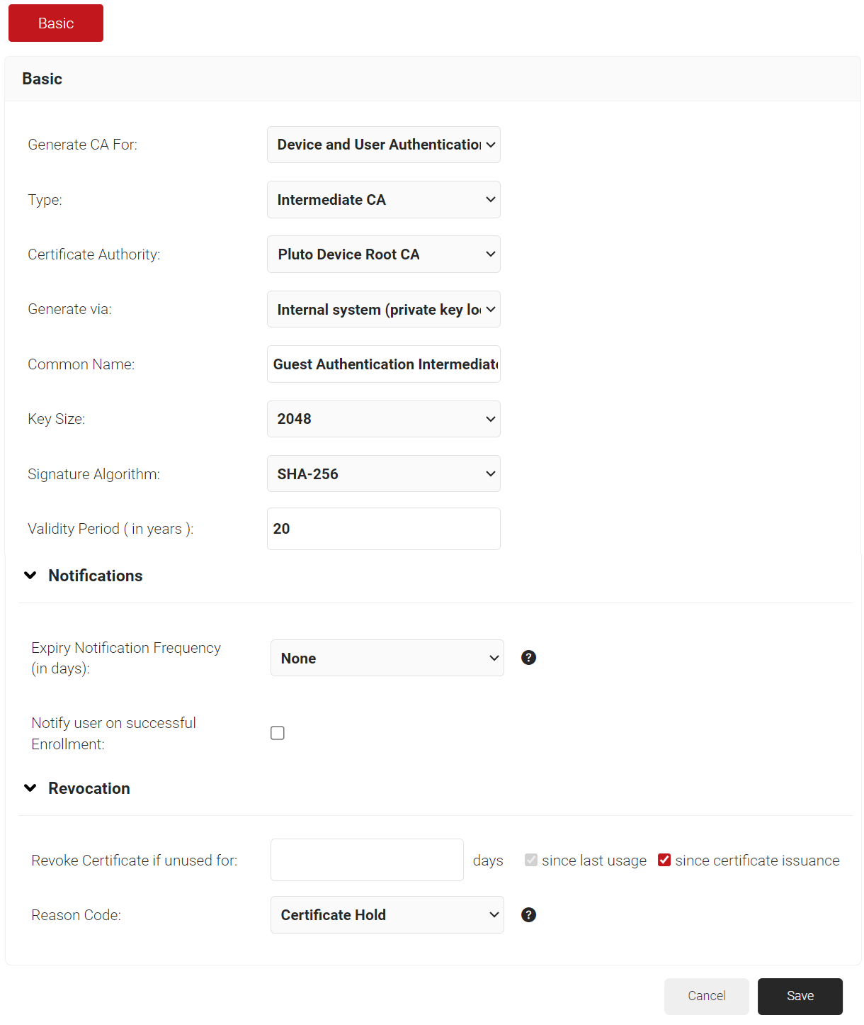 - From the Use Certificate Authority drop-down list, ensure that the Intermediate CA you created in the Certificate Authority section is selected.
