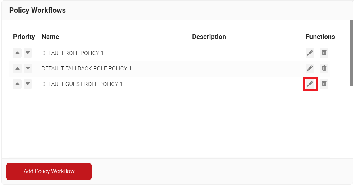 - Click Edit on the DEFAULT GUEST ROLE POLICY 1.