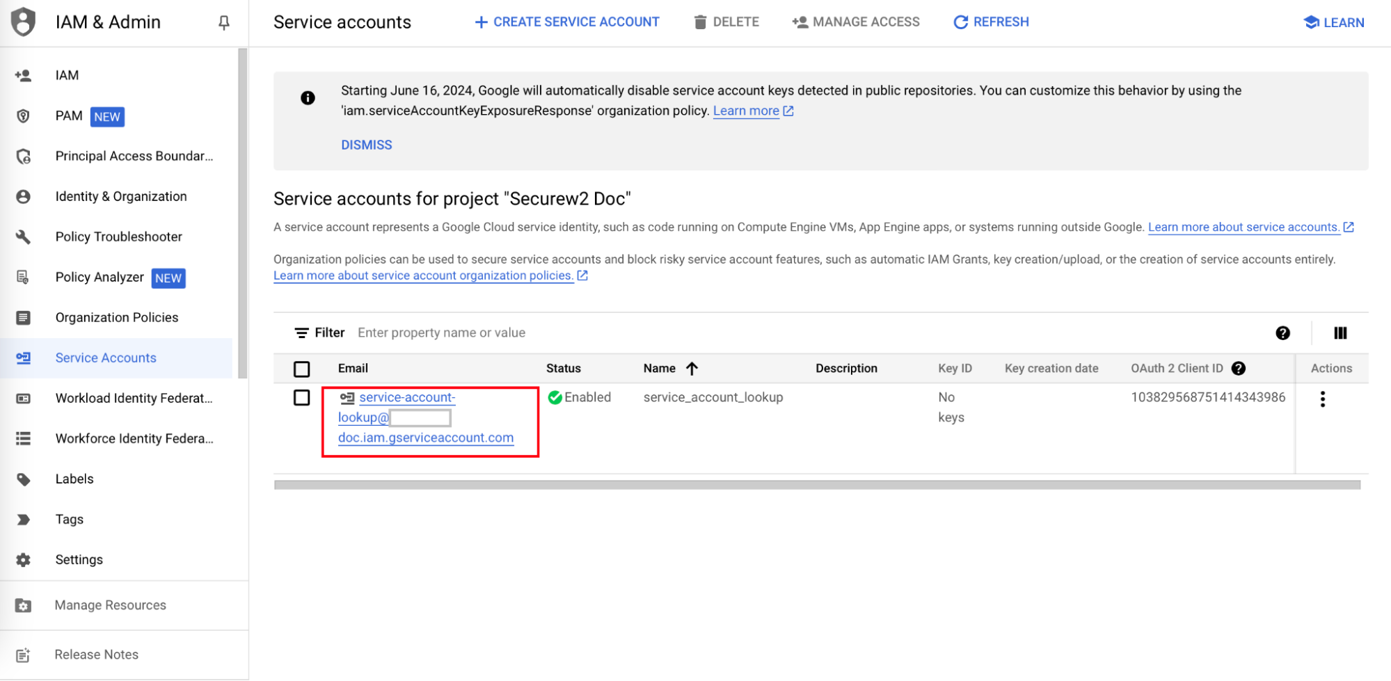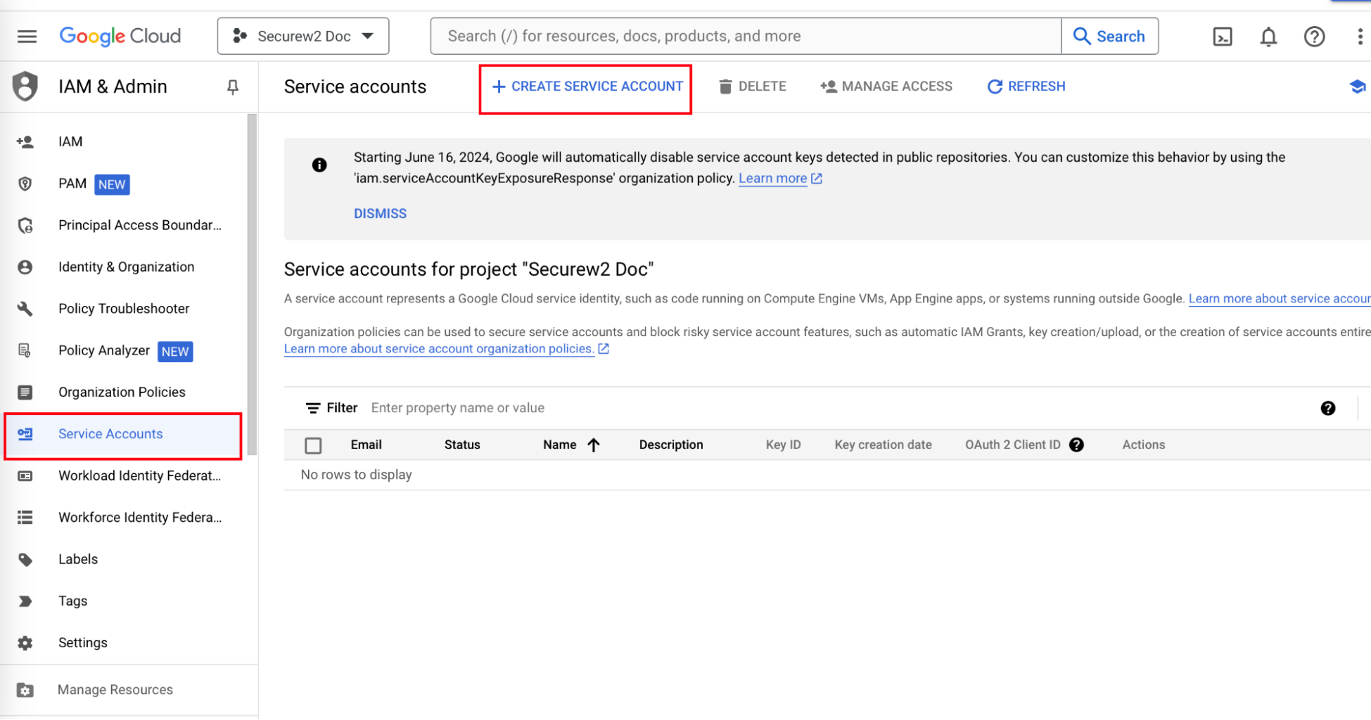 - Click + CREATE SERVICE ACCOUNT.