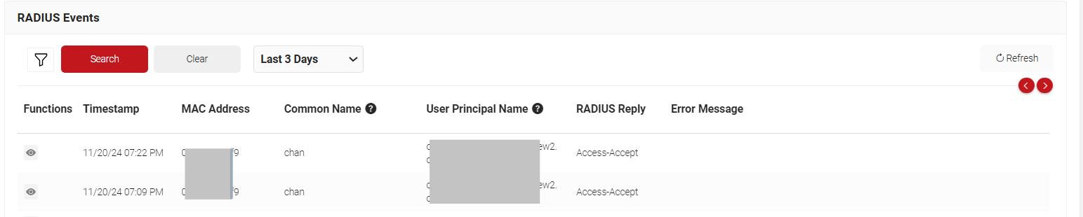 Post successful configuration, admins can check for successful RADIUS Authentication under Data and Monitoring > RADIUS Events. In case of Certificate Issuance, a message would be displayed for the device enrolled under Data and Monitoring > General Events