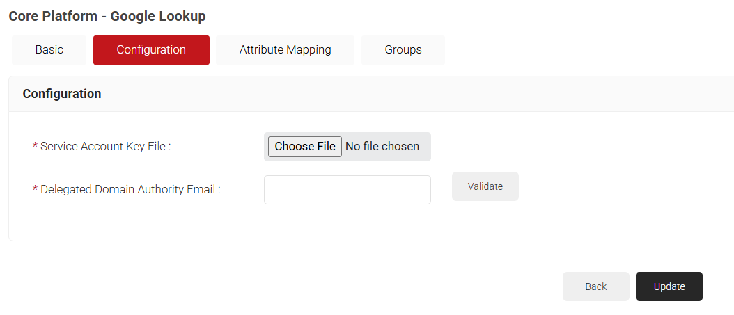 Delegating domain wide authority helps administrators of the organization to authorize the service account to access user data required for lookup. Admins can delegate access to a service account from their Google Admin console.