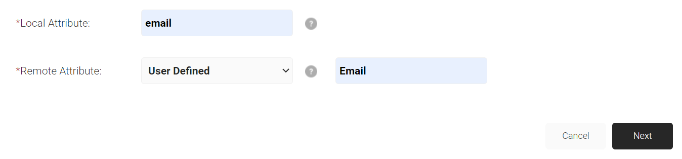 - In the Remote Attribute field, select the attribute to be mapped to the Local Attribute. If your preferred attribute is unavailable in the drop-down, select User Defined and enter the value to be mapped.