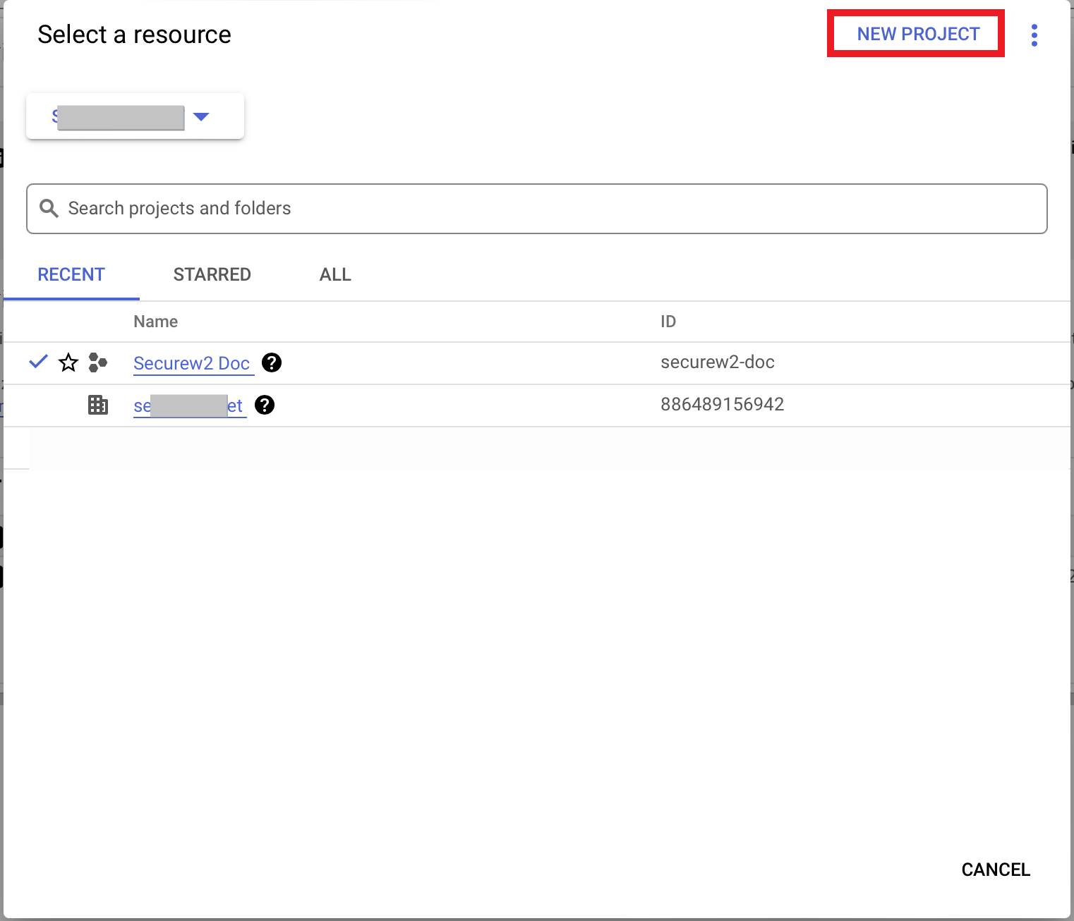 - Click NEW PROJECT.