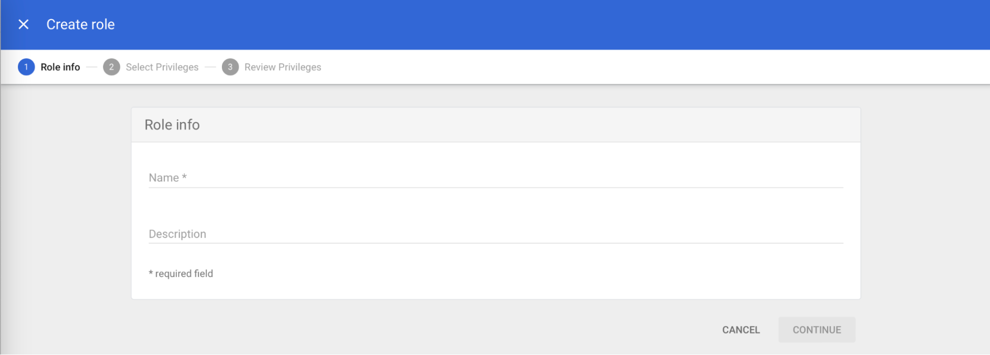 - In the Role info section, for the Name field, enter a name for the role.