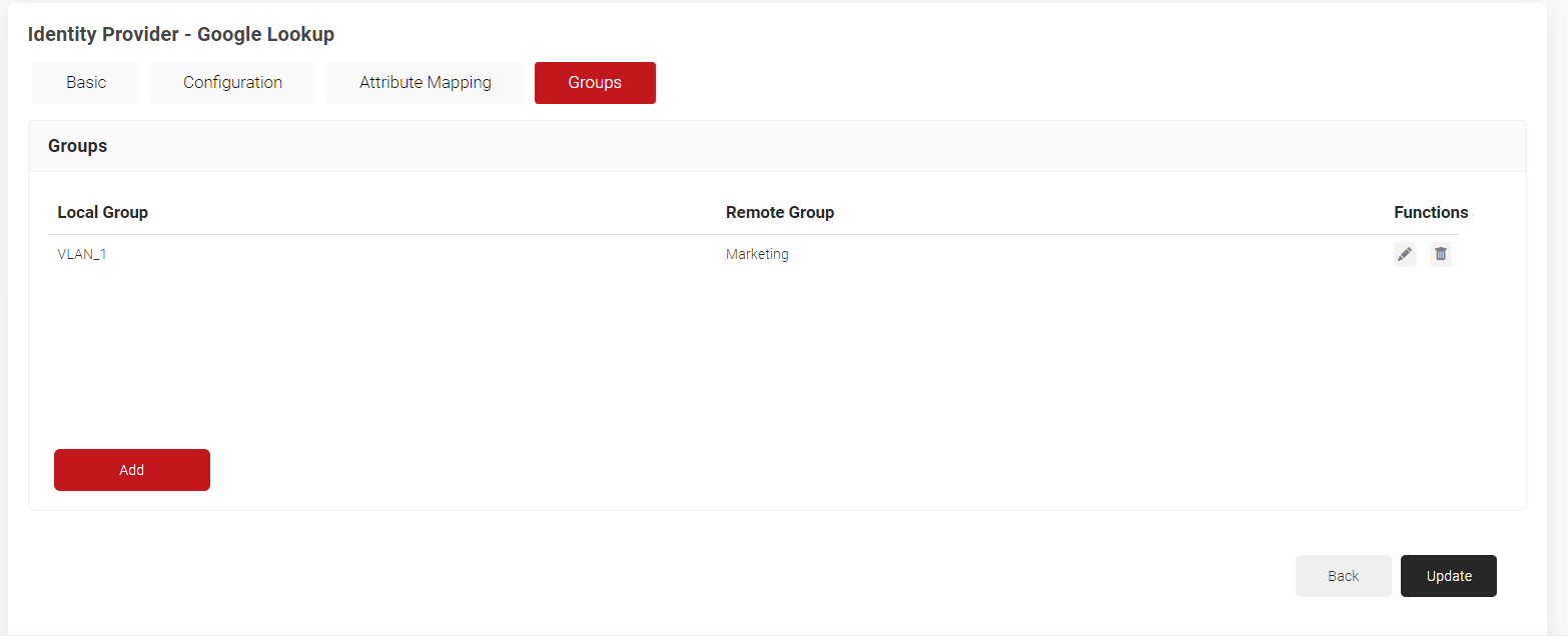 - Click Save. The page refreshes and the Configuration, Attribute Mapping, and Groups tabs appear.