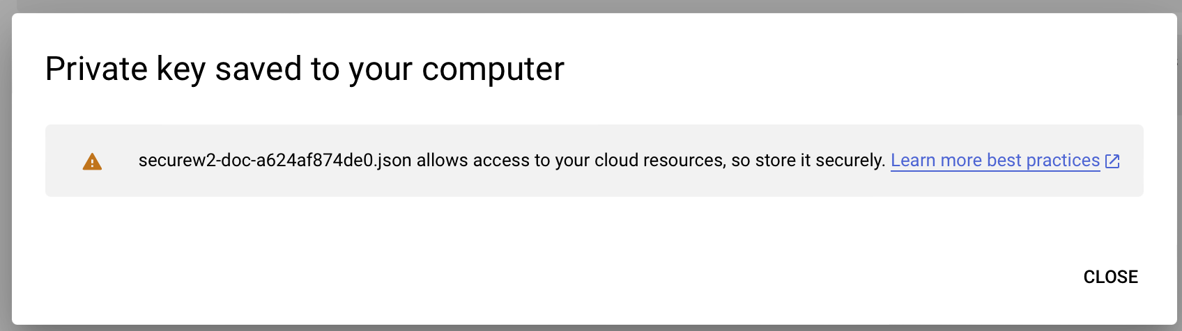 - Click CREATE. The JSON file will be downloaded to the device. Click CLOSE.