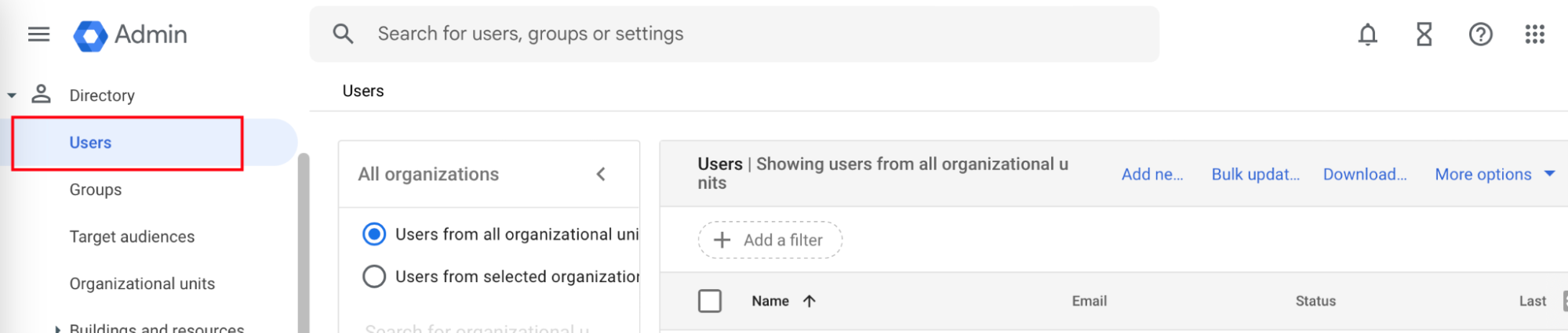 - Navigate to Directory > Users.