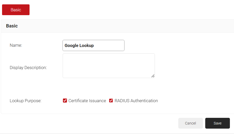 Before the certificate issuance and during the RADIUS authentication process, Identity Lookup feature validates that a device/user is active within the organization by checking the identifying information against the existing accounts in the Identity Provider.