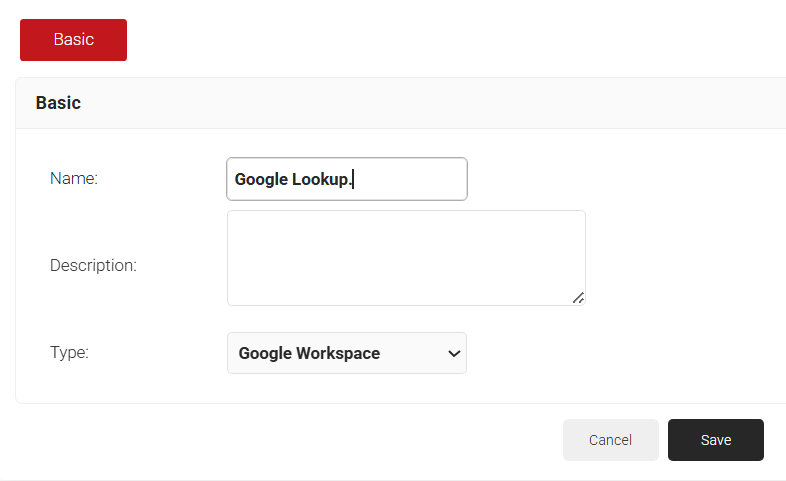 - From the Type drop-down list, select Google Workspace .