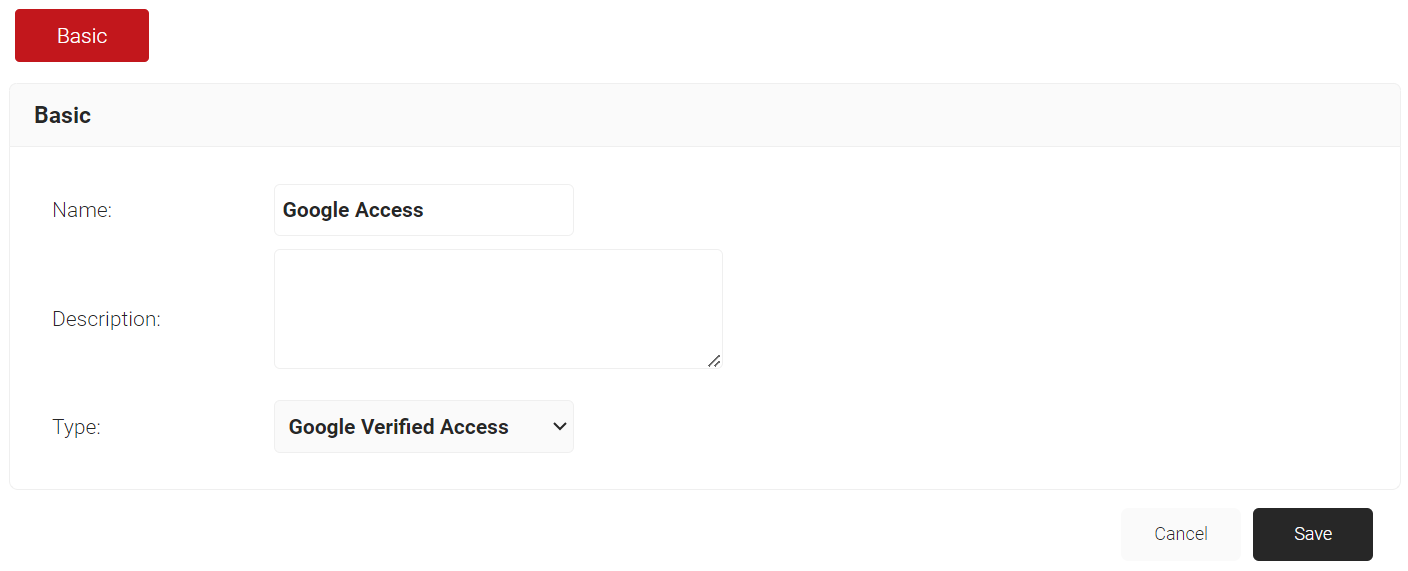 - From the Type drop-down list, select Google Verified Access.
