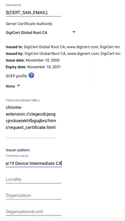 - In the Username field, type ${CERT_SAN_EMAIL} or ${CERT_SAN_UPN}.