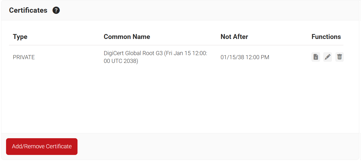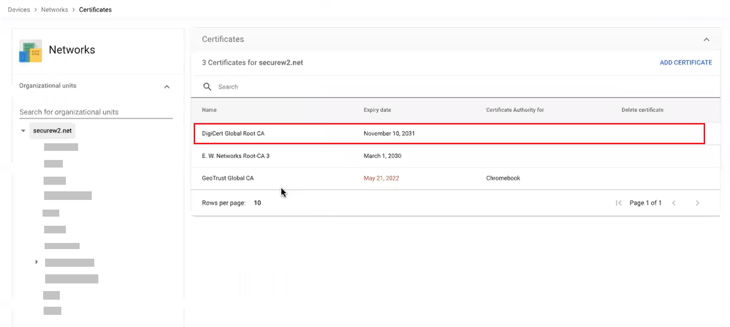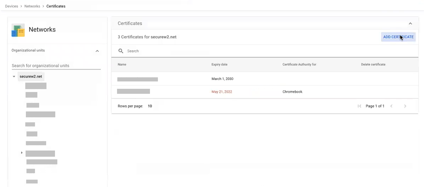 - On the Certificates page, click ADD CERTIFICATE.
