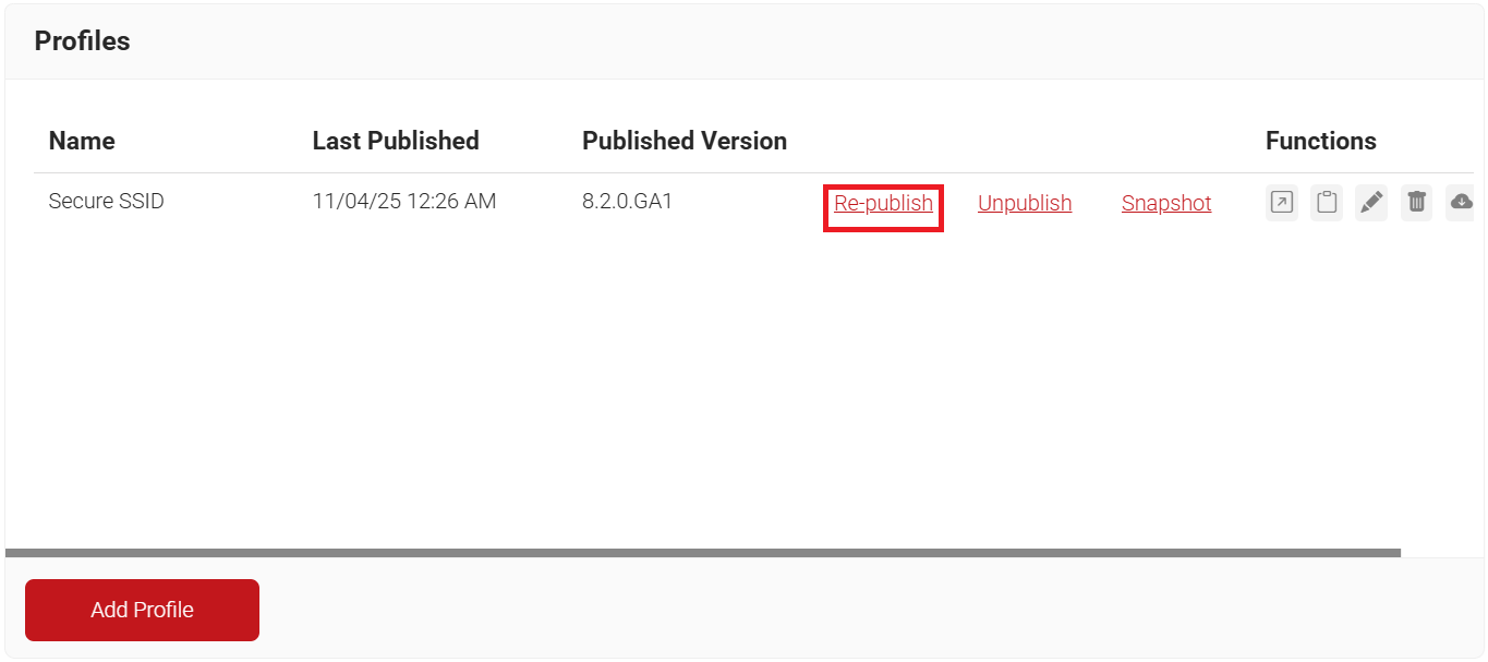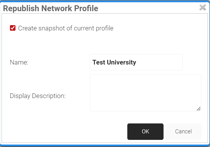 - In the Republish Network Profile pop-up window, type the name of the network profile and click OK.