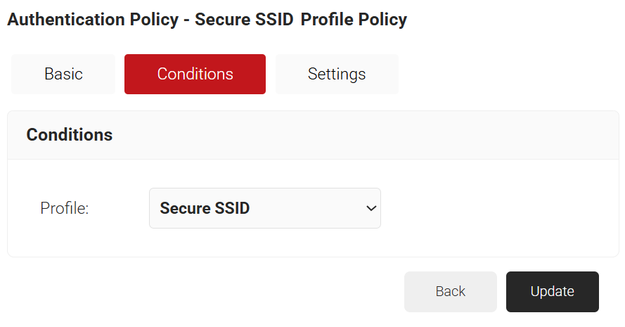 - Select the Conditions tab and make sure that your network profile is displayed in the Profile field.