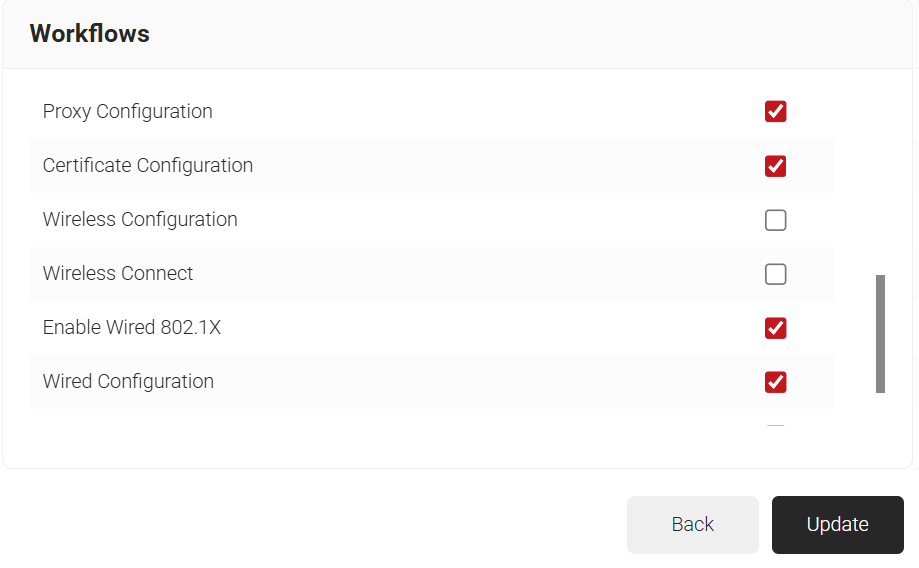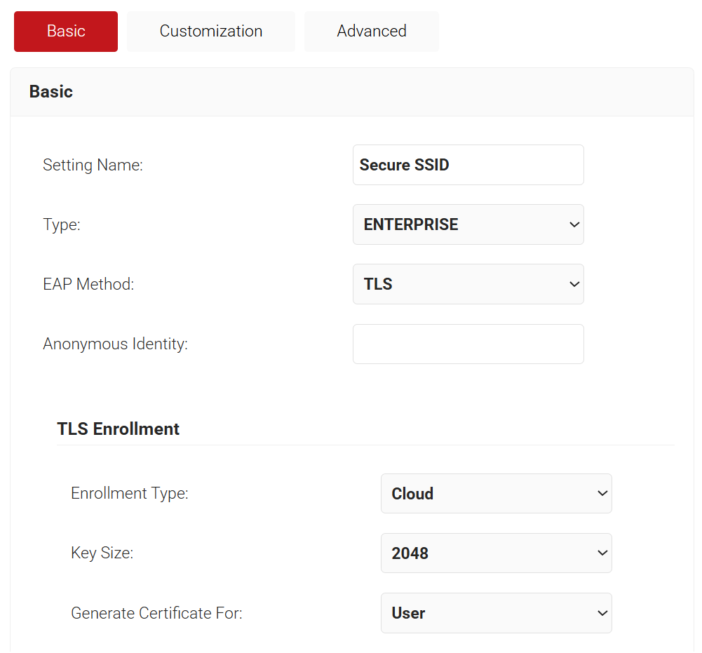 A Network Profile contains the settings our device will need to use for 802.1x. This will instruct the device to use the certificate that it has recently enrolled for network authentication, and also include other important EAP-TLS 802.1x settings.