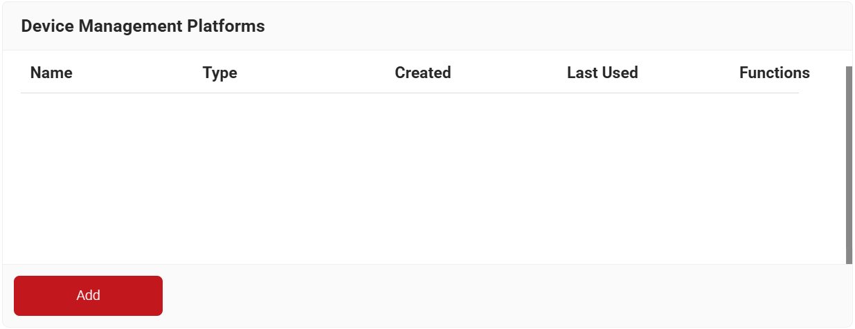 - Navigate to Integration Hub > Device Management Platforms.