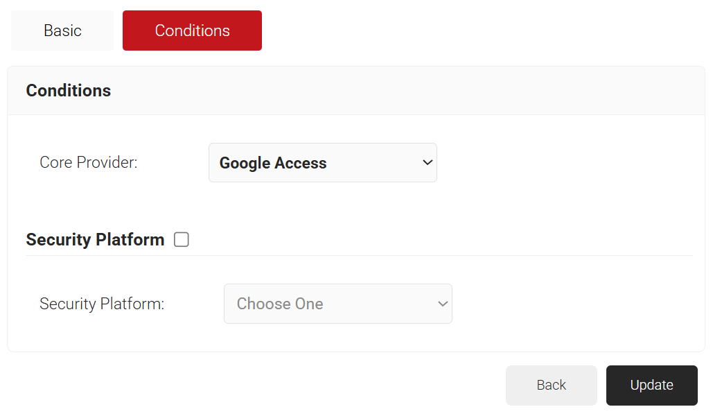 - From the Core Provider drop-down list, select the device management platform you created earlier (refer to the Configure a Google Verified Access Device Management Platform section).