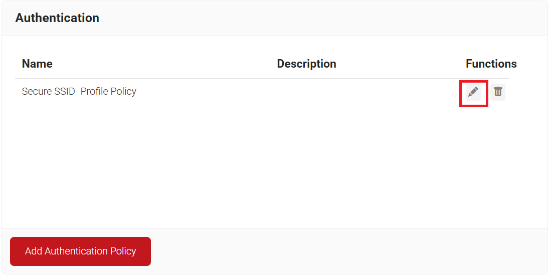 - Click the Edit link for your network profile’s authentication policy.