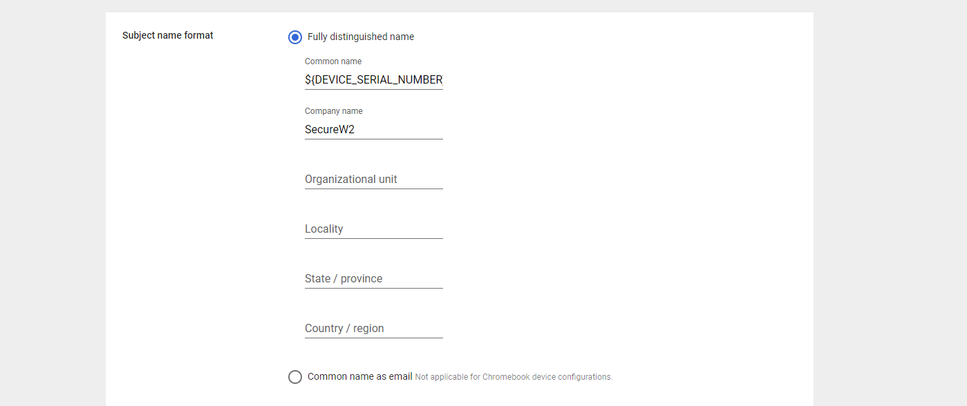 - In the Common name field, enter ${DEVICE_SERIAL_NUMBER}