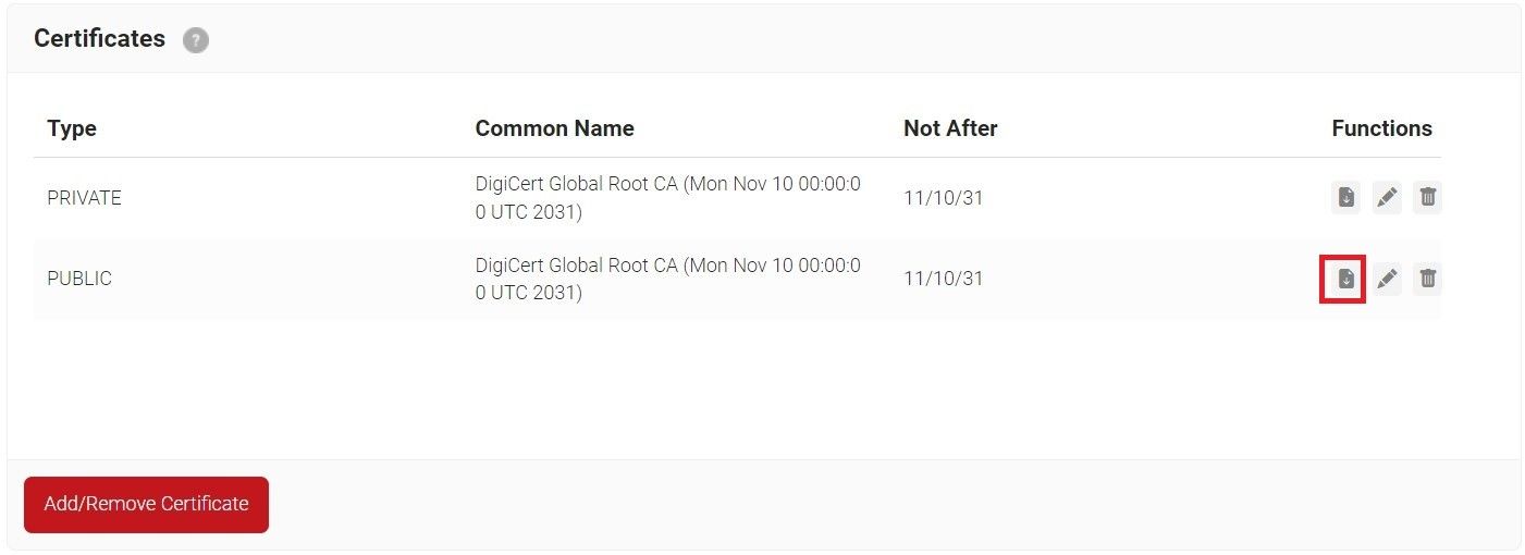 - In the Certificates section, click Add/Remove Certificate.